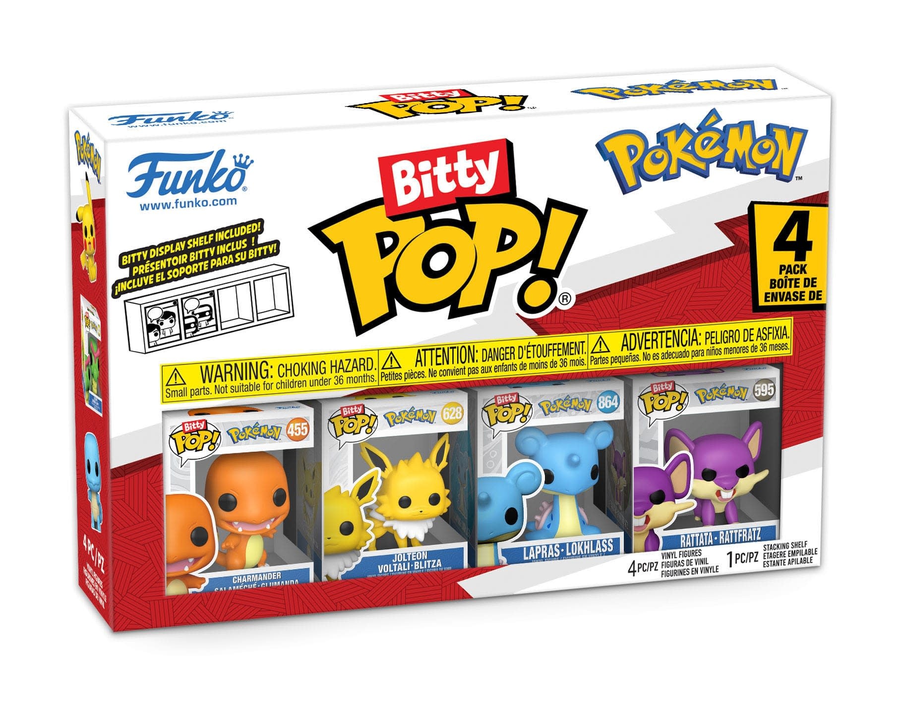 Aus Funkos „Bitty POP!“-Reihe kommt dieses 4er-Pack Mini-Vinyl-POP!-Figuren. Jede Figur ist ca. 2 cm groß und wird in einer Acrylverpackung im typischen Funko POP!-Design geliefert. Eine stapelbare Vitrine bietet Platz für alle vier Figuren. Sammeln Sie all diese bezaubernden Pokémon Funko Pop!-Minifiguren!