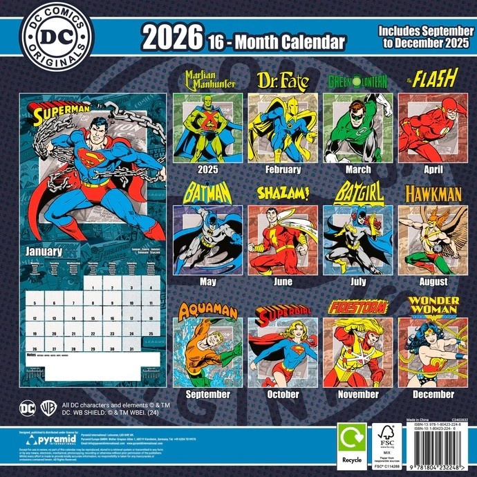 DC Comics calendar 2026 - Superman - Wonder Woman - Batman