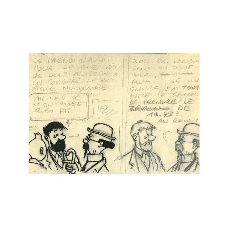 Moulinsart Tintin postcard - Calculus, Tintin & Haddock