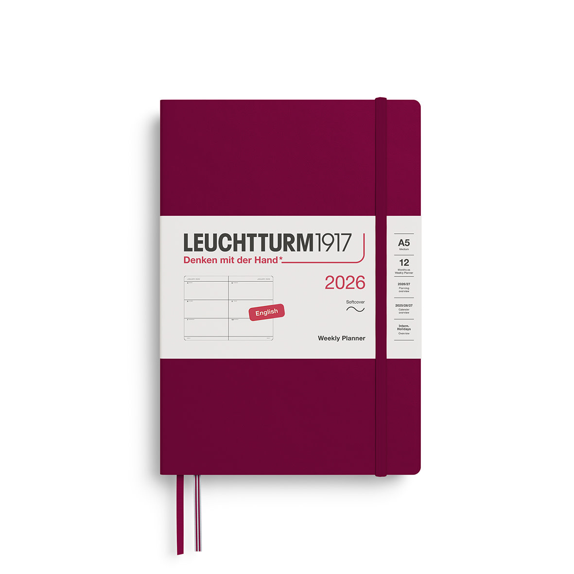 Mooie agenda van het luxe merk Leuchtturm1917. Beschikbaar met harde kaft of met zachte kaft en in de kleuren: Black, Dusty Rose, Port Red, Forest Green, Ink, Rising Sun, Spring Leaf en Deep Sea. Afmetingen: Medium (A5): 15 x 21 cm, 80 g/m² papier. Papierkleur: chamois.
