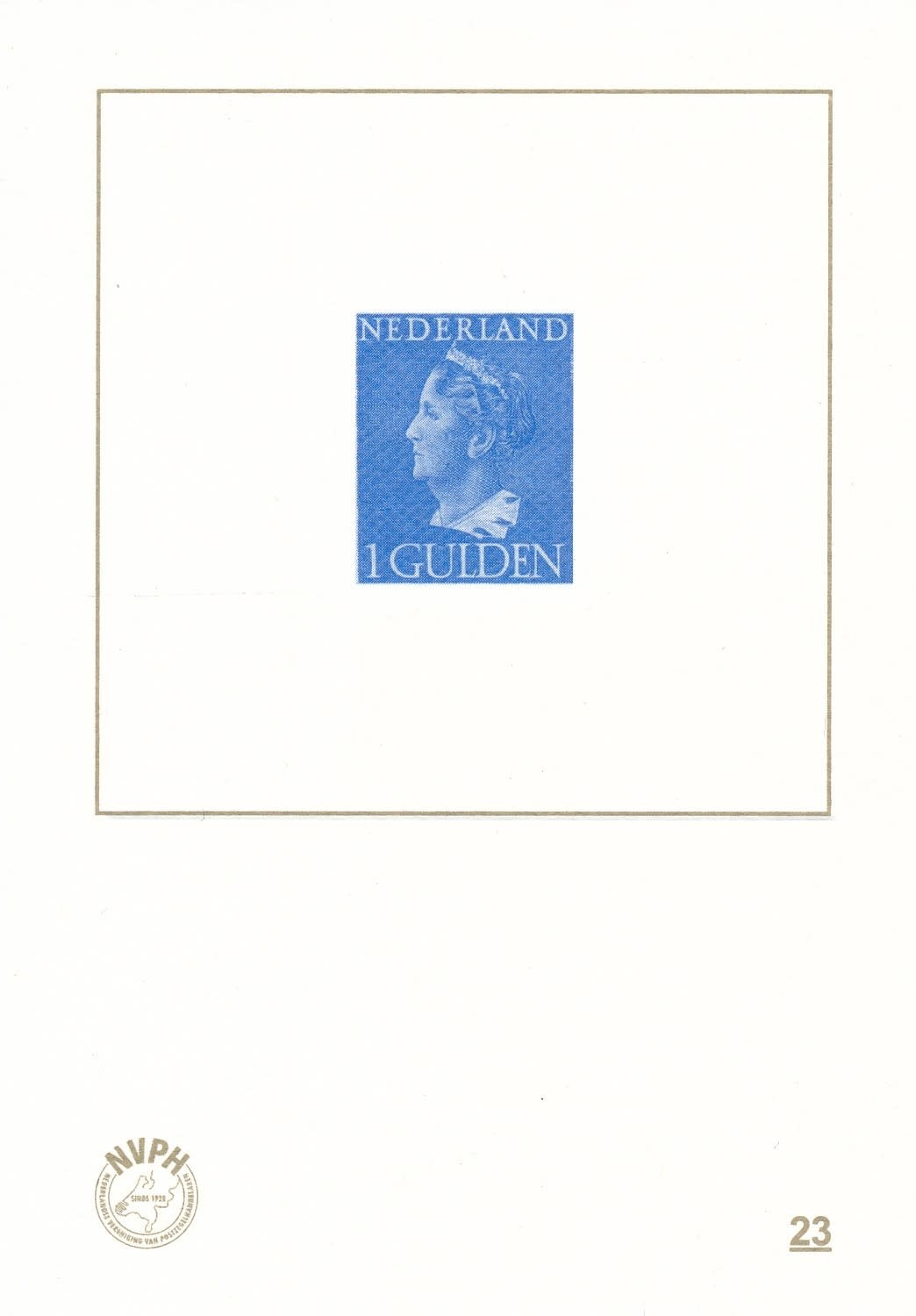 NVPH Blauwdruk nr. 23 met afbeelding Nederland nummer 346 koningin Wilhelmina 1 Gulden uit 1946